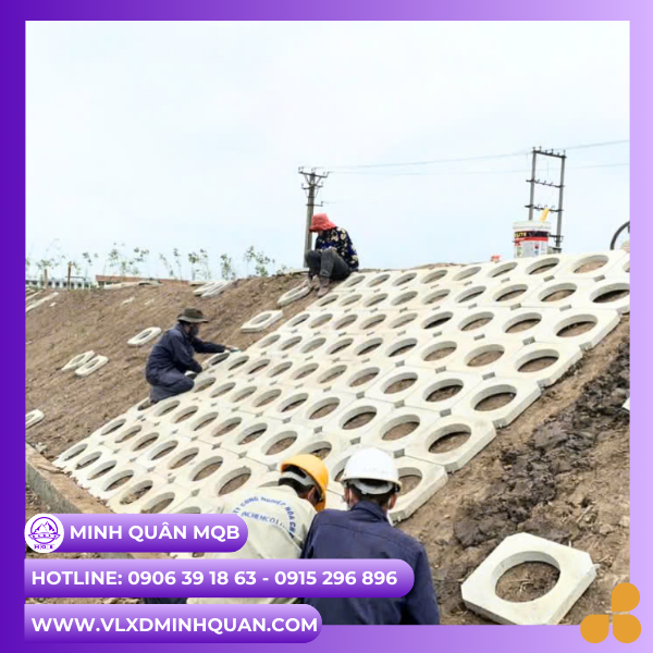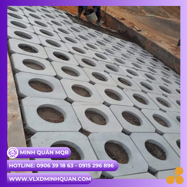 Độ bền cao và chống xói mòn hiệu quả: Sản xuất từ bê tông cường độ cao (từ mác M200 trở lên), loại gạch này tạo nên cấu trúc vững chắc, bảo vệ mái dốc, bờ ao, bờ sông khỏi tình trạng sạt lở.